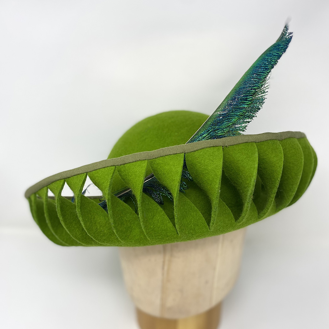 Looking to give your blocked felts added interest without piling on the trim? In this fast-paced mini-workshop, we’ll explore ways to cut, fold and twist the felt within a hat to add intricate details. And if you’ve ever wondered what to do with felt scraps and off-cuts, we’ll explore waste-free ways to develop trims that utilize every little bit.
